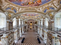 Admont Abbey Library. Admont, Austria (1776). Ubicada en la falda de los Alpes, fue construida por el arquitecto Joseph Hueber, quien afirmó: “Al igual que con la mente, la luz también debe llenar la sala”. La colección de libros original se tiñó de blanco para que encajase con el resto de la decoración. Cuenta actualmente con 200.000 volúmenes.