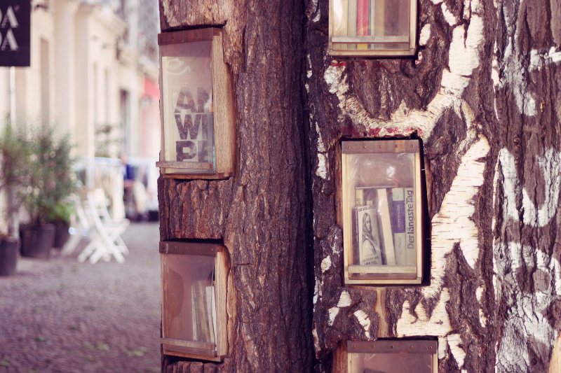 En el barrio de Prenzlauer Berg, en Berlín, surgió una de las iniciativas para el fomento de la lectura más originales que se han ideado. Desde el año 2006, el programa Book Forest (‘Bosque de libros’) invita a los vecinos de la zona a dejar un libro o tomar prestado alguno de los que pueden encontrar en el interior de unos troncos de árboles colocados en las aceras.