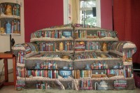 Esa es la estética tradicional que nos aportan los libros. Pero actualmente las pilas de libros se transforman en otras cosas: mesas de centro, mesillas de noche, jardineras, banquetas, mostradores, árboles de Navidad, columnas…He visto de todo en decoración con libros, algunas de lo más variopinto,  como un improvisado pórtico para ambientar un enlace matrimonial. Supongo que los novios, como dijo nuestra princesa Letizia en relación al príncipe en su presentación oficial, serían ‘ávidos lectores’ y por ello, entre otras cosas, se aman….