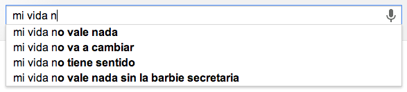 El algoritmo ‘autocompletar’, cuando buscamos algo en Google, nos sugiere una seríe de opciones antes de que nosotros mismos terminemos de escribir lo que buscamos. En su afán por adelantarse a nuestras intenciones y facilitarnos el trabajo, Google nos muestra frases que se inician tal y como nosotros hemos comenzado a escribir, pero que terminan, tal y como buscó otra persona en la otra punta del planeta.
